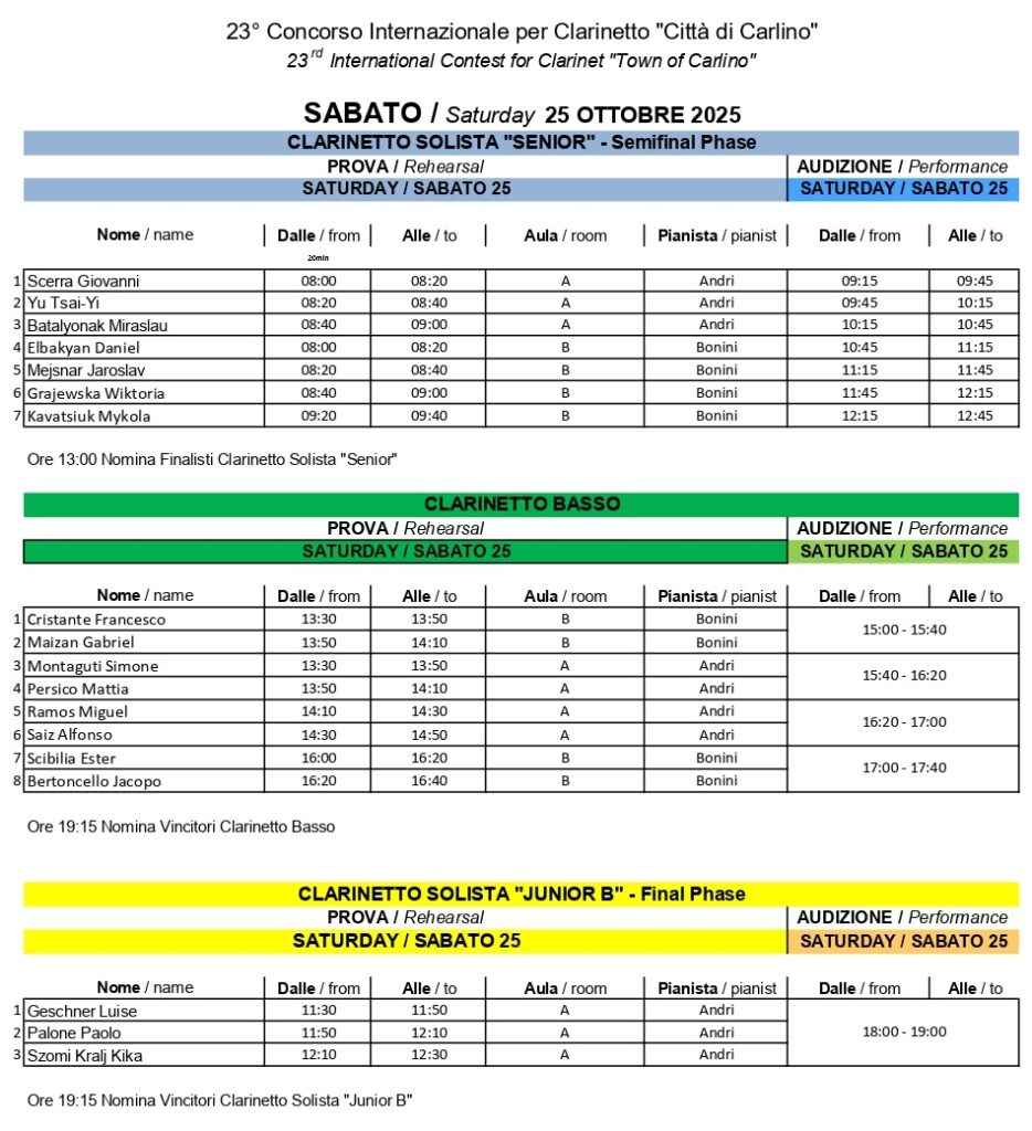 Below you will find the timetables of the rehearsals and performances on Saturday 25th October 2025.