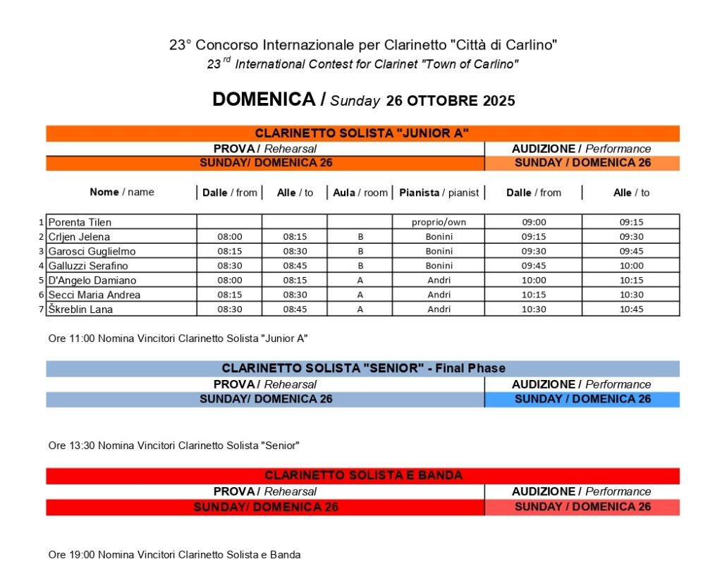 Below you will find the timetables of the rehearsals and performances on Sunday 26th October 2025.