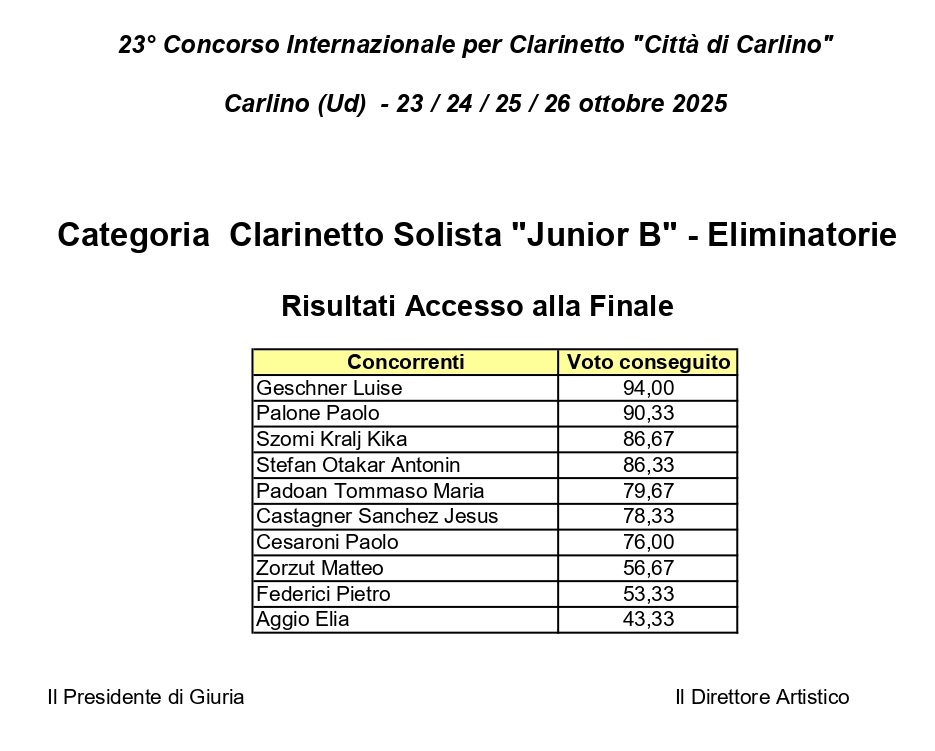 The results of the phases of the Junior B Soloist Clarinet Category will be reported below.