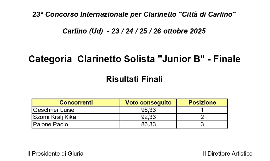 The results of the phases of the Junior B Soloist Clarinet Category will be reported below.