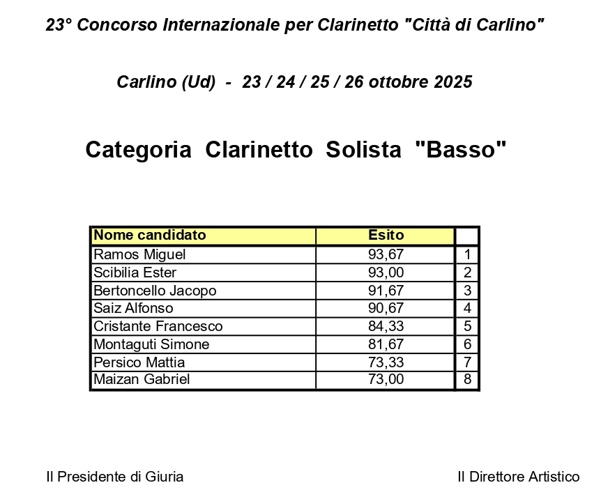 Results Results Bass Clarinet Category Below are the results of the Junior A solo clarinet category. By Moira Moro